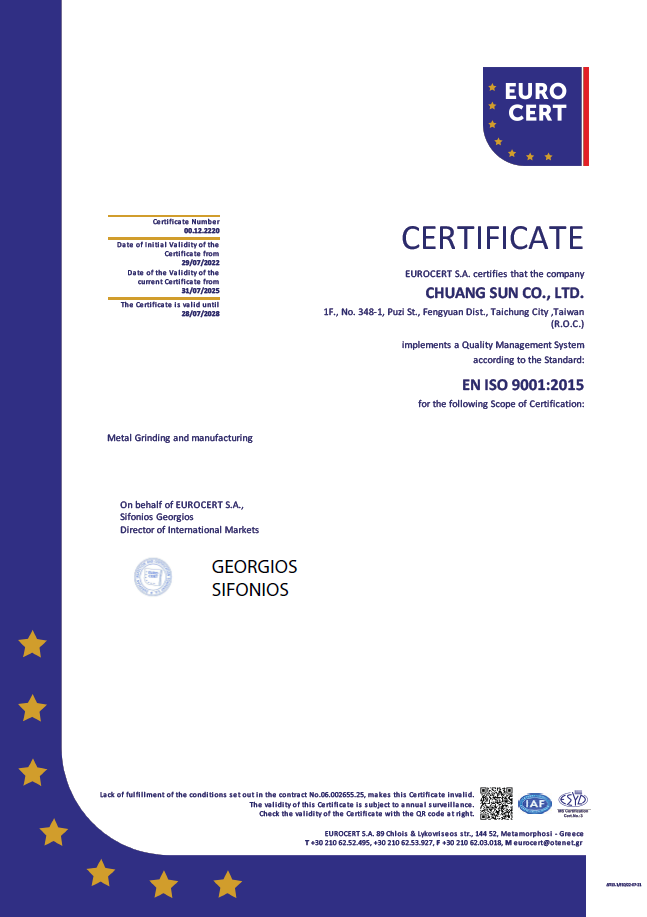 創聖有限公司通過ISO9001國際品質管理認證(2025~2028)